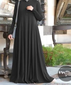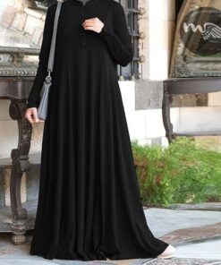 Abaya Tasnim a bouton sur le devant, souple légère et évasée pour encore plus de confort confectionné par Mouhajiroun a porter avec un khimar