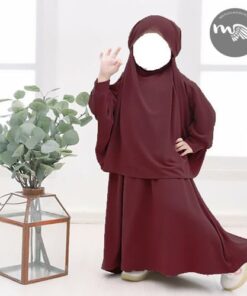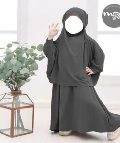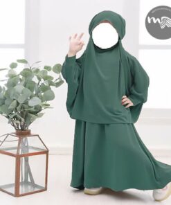 Ensemble enfant Maymunah composé d’une abaya manche courte et d’un Khimar souple et léger pour habiller nos princesses avec pudeur et qualité
