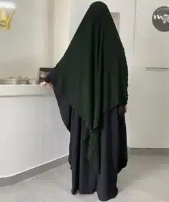 - Coupe pointue : Le khymar Leyla présente une coupe longue et pointue qui ajoute une élégance naturelle à votre tenue.